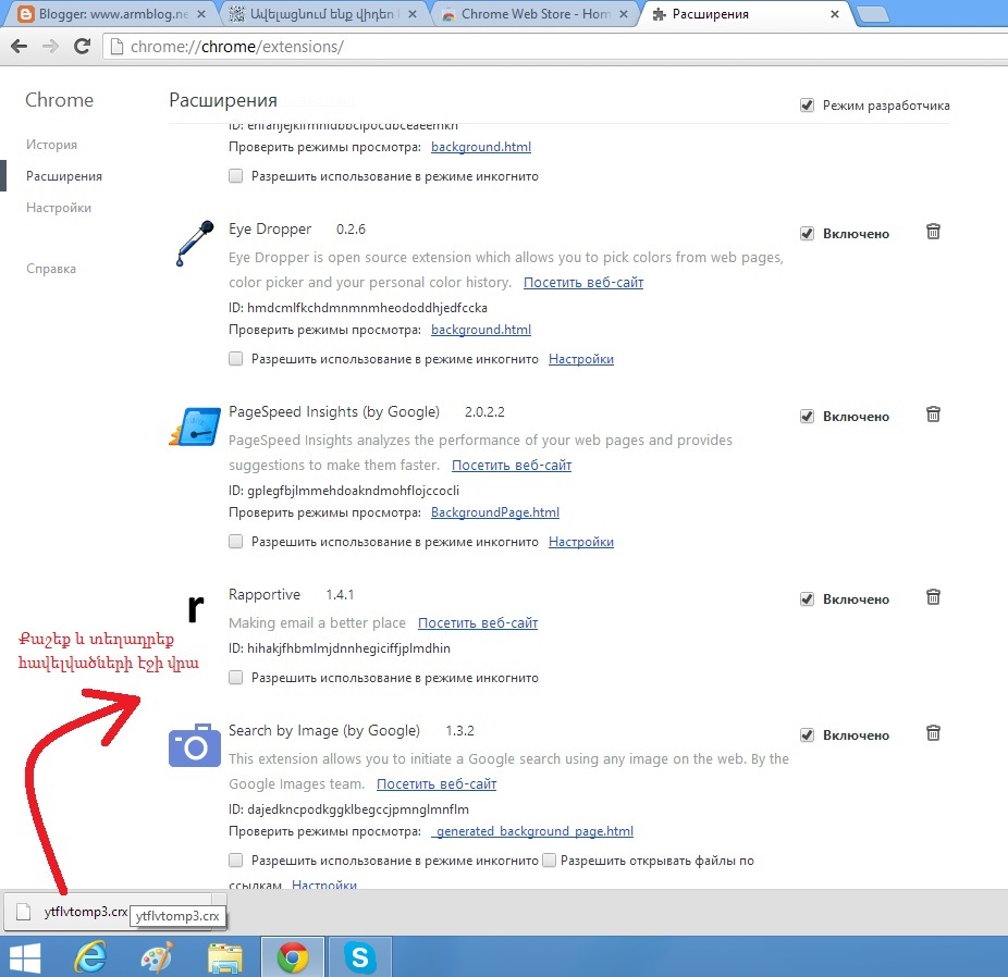 Google Chrome ինտերնետ դիտարկչի վերջին տարբերակներում այլևս հնարավոր չի տեղադրել կողմնակի հավելվածներ: Այսինքն հնարավոր է տեղադրել միայն այն հավելվածները, որոնք տեղադրված են Chrome Store-ում:Կան հավելվածներ, որոնք չենք կարող սովորական եղանակով տեղադրել Chrome-ի վերջին տարբերակների վրա: Նմանատիպ հավելվածները տեղադրելու համար կատարեք հետևյալ քայլերը՝